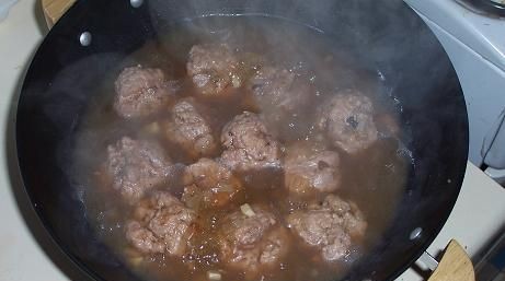 Façonnez la viande en petites boulettes et faite- les dorer dans un wok, puis réservez-les.